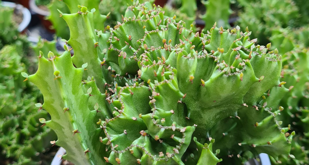 L'Euphorbia lactea crestata è una succulenta della famiglia delle euforbie con una forma insolita data dai suoi rami carnosi che la rende simile al cactus.