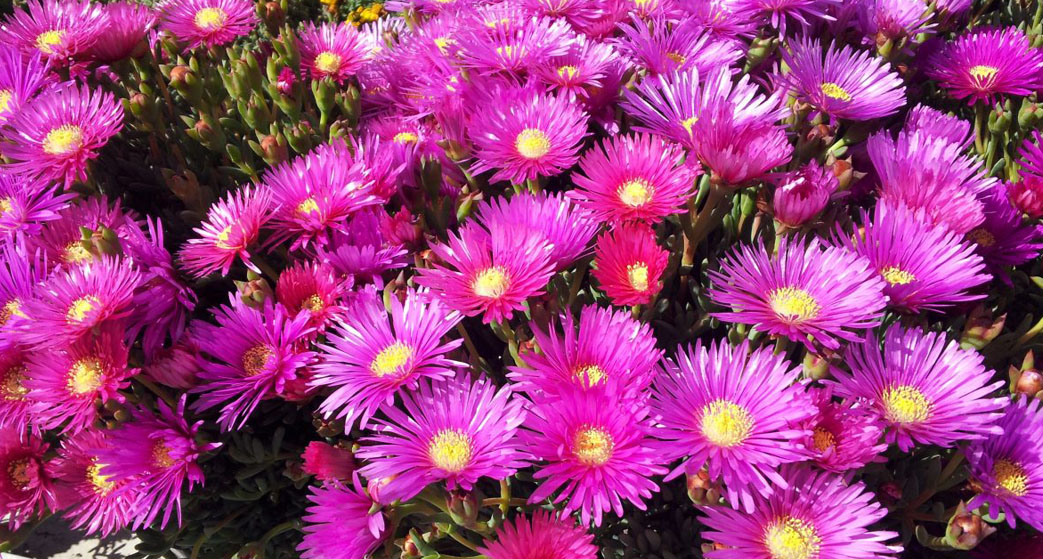 Il Mesembryanthemum, o Mesembriantemo, è una pianta succulenta molto facile da coltivare e con ricca fioritura estiva. Ne esistono diverse varie specie.